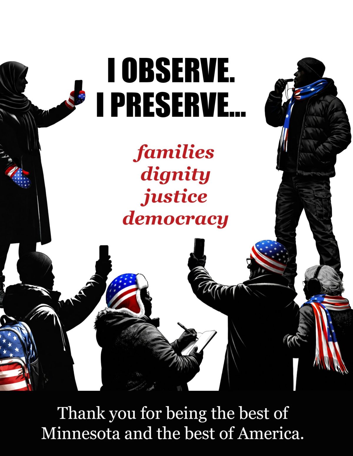 Neighbors are delivering groceries, bringing kids to school, and helping those who are too scared to leave their homes. People are stepping out in the freezing cold to peacefully protest and use their voices to defend our community and our country. Observers are playing a critical role to document dangerous and reckless enforcement and ensure justice.