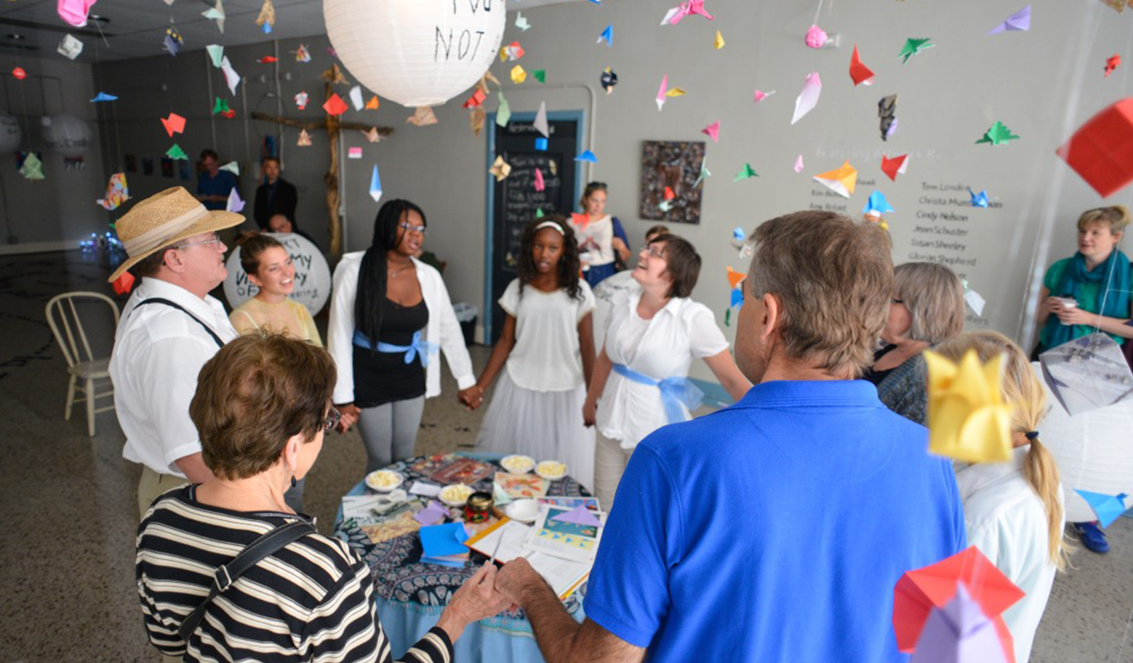 Con una subvención de ArtPlace America, otro beneficiario de McKnight, Springboard planeó un año de actividades en el edificio Kirkbride para ayudar a la comunidad a descifrar la compleja historia y los recuerdos de vivir en un pueblo con una institución de salud mental. Desde talleres dirigidos por artistas, producciones teatrales originales y exhibiciones, hasta presentaciones que rodearon el edificio, los artistas locales transformaron la relación que alguna vez fue incómoda entre el edificio Kirkbride y la comunidad.